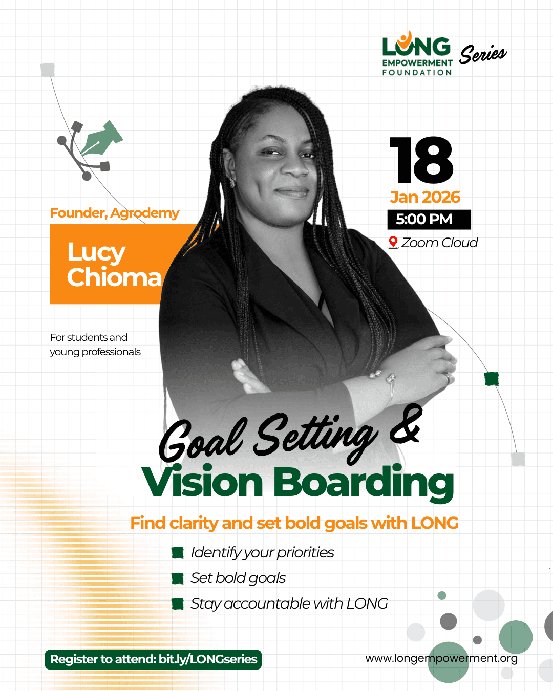 We will have the pleasure of Lucy Chioma taking us through our vision boarding and goal setting session.